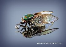 蝉 | 肩针 不雨花犹落,无风絮自飞。 金蝉将飞未飞之际,世间全然静下。色彩幻化的蛋白石犹如五光十色的花花世界,在蝉思的一刻,却能观心内省,晦昧渐消,灵明觉醒,如通明剔透的蝉翼,以珍珠贝及水晶切成薄片结合而成,再在水晶上刻出坑纹,植入金丝,晶莹剔透之余,不同物料的色彩通过光线折射出奇特的色彩,与五彩黑奥宝的蝉头互为映衬。设计师以精湛的手工,配合物料的灵活运用,以有形之物烘托出禅的意境。 |