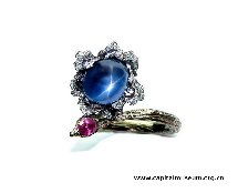 我心深处 | 手镯 夜空无垠,万赖无声 在妳颔首的一刻 心花怒放,天籁共鸣。 一颗153卡的星光蓝宝,色泽深邃而清澈,绽放六度星光,灵光吐现。配上光芒绽放的白钻,片片明亮闪烁的花瓣,犹如绽放心花,璀璨夺目。红粉菲菲的粉红蓝宝,如含羞答答的少女,与星光蓝宝遥遥相对,互诉衷情。 |