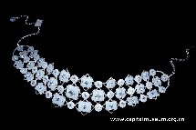 绫罗 | 项链 绫罗是中国一种最名贵的布料,质料轻、薄、柔、软;而作品「绫罗」,显示设计师的镶嵌技术再上一层楼。他视钛金为轻丝,将白玛瑙串连,编成一段绫罗锦缎;为展现绫罗的轻柔如丝,作品将钛金织成网状,配戴时就能贴服地随颈项的线条弯曲;而要令天衣无缝,镶嵌时则巧妙地将所有关节收藏起来,丝丝入扣。 圆润温婉的白玛瑙经过细心的打磨切割,色泽温润细腻,散发淡淡柔光,然而中间却以独创的方式将钻石嵌入白玛瑙之中,令整件作品吐露耀目光芒,散发典雅与高贵的气质,如一段仙绫。