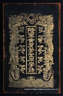 陆军贵胄学堂同学录 清 征集 清朝光绪三十二年(1906年),北京铁狮子胡同东口路北成立了一所贵族军事学校—陆军贵胄学堂,隶属于陆军部下属的练兵处,管理者为庆亲王及陆军部尚书铁良,以下有总办、监督等。学堂专门考收王公世爵暨四品以上宗室、现任二品以上京外满汉文武大员之子弟,教以普通学术及陆军初级军事学,并入军队观察学习。此外,学校的管理及其他方面均享有高于其他学校的优厚待遇。
