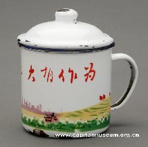 刷牙缸 现代 征集 上山下乡运动是二十世纪六、七十年代文化大革命运动后期组织大量城市“知识青年”离开城市,在农村定居和劳动的政治运动。这是当时北京派工作组去内蒙看望下乡知青时送给每人的一个搪瓷缸。 |