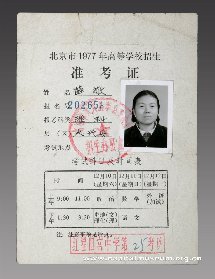 1977年准考证 现代 薛敬捐赠 1977年恢复高考是文革之后教育改革的重大历史事件,这一事件的发生影响甚至改变了文革中许多有志青年的人生命运。 |