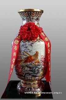 “慈善明星集体奖”奖瓶 现代 首都慈善公益组织联合会捐赠 这件奖瓶有着特殊的意义。2008年12月3日,为表彰首都慈善公益组织联合会各会员单位在抗击冰雪、抗震救灾、奥运保障等工作中作出的贡献,答谢社会各界对首都公益事业的支持,召开了“1 2.3首都慈善公益日晚会”。晚会上,北京市市长郭金龙和什邡市市长李成金共同把“慈善明星集体奖”颁给了北京市全体市民。会后,根据联合会会长吴世民的提议,这一奖项的奖瓶永久存放于首都博物馆。(展品现于首都博物馆礼仪大厅展示)