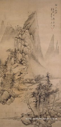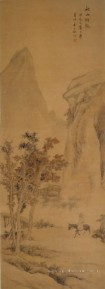 秋山行旅图 查士标 查士标(1615—1698年),字二瞻,号梅壑,又号后已卯生,安徽海阳人,流寓江苏扬州。画初学倪瓒,后参吴镇,用笔不多,惜墨如金。与孙逸、汪之瑞、弘仁并称“海阳四大家”,“新安派”代表人物之一。此图绘山间秋色,多诗意。笔法松活清秀。自题:“秋山行旅,仿元人唐子华画法。查士标。”“唐子华”即唐棣,元代宫廷画家。 |