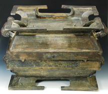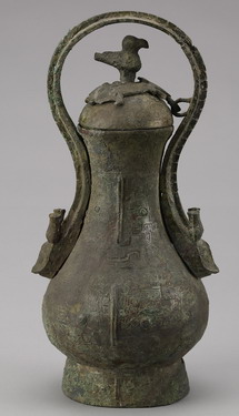 龙头提梁卣 通高36.0厘米 口径8.8厘米 酒器 商晚期(公元前13世纪前期~公元前1046年) 河南省安阳市殷墟妇好墓出土 |