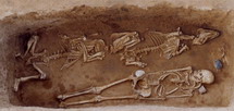 兴隆洼遗址人猪合葬墓 墓主人是聚落首领式人物,其右侧埋葬的两头整猪可能具有了图腾崇拜的意义。 |