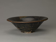 黑釉撇口兔毫油滴瓷碗 高4.9厘米 口径12.8厘米 宋代(公元960~1279年) 福建省建阳县建窑遗址出土 |