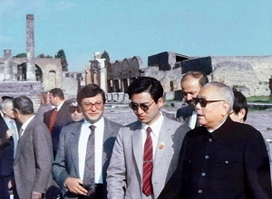 中国国家主席李先念访问庞贝古城遗址,1987年