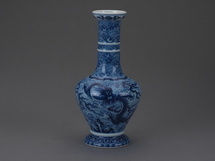 在这次展览中,我们还有一件铜胎的雍正青花海水龙长颈樽也同台展出,能够从相隔几万里的两位藏家手里借到这两件展品,可以说是非常难得的。这两件展品的器形、纹饰都大致相同,只是铜胎的龙是侧面形象,观众可以通过现场的对比而一见分晓。