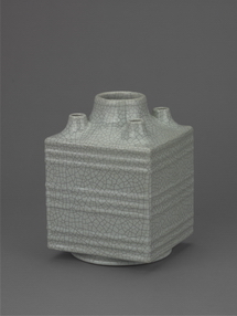 有句老话:一方顶十圆。就是说一件方的器形的工艺比十件圆器形的工艺要复杂的多。这件展品不仅烧造出了五孔方形,还以仿哥窑的单色釉通体烧造。仔细观察其表面的各个位置,没有发现任何一处存在明显瑕疵,完美体现出了宋代哥窑的成色和风韵。可以说这件器物的烧造工艺已经达到极致。