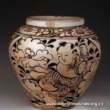 白釉黑花婴戏图罐 |