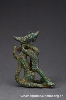 陕西宝鸡北首领仰韶文化半坡类型遗址出土的蒜头壶上的类龙形象