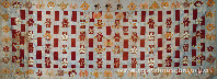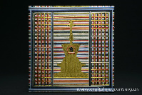 正方形,由象征“五佛”或“五智”的红、黄、蓝、白、绿五色丝线缠绕而成,正反两面中央由金线缠绕成白塔图案,正面塔身绣一梵文(读音为“啊”)。据科学仪器测试,密封册内密封有一座小白塔,小白塔的塔身部位有一尊小金佛。 体现了藏传佛教独特而神秘的奉佛形式。 |
