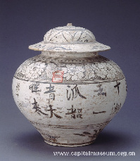 磁州窑白地黑花诗文罐 元 1980年妙应寺白塔塔基北侧出土