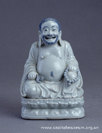 青花布袋僧像 明万历(1573-1620年) 房山区大韩继村多宝佛塔内出土 |