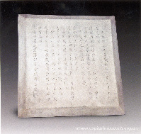 雕刻于明万历二十年(1592年),长宽各49厘米,高50.9厘米,为最外重石函。函盖盖面刻大明万历二十年高僧德清所作题记,共172字,记述明万历二十年发现佛舍利后万历母亲慈圣皇太后迎入宫中供奉三天的经过。函盖内面刻高僧达观发愿偈,共83字。 |