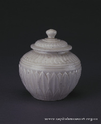 定窑白釉刻花莲菊纹“官”字款盖罐 宋 |