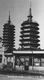 庆寿寺双塔分别是庆寿寺住持海云及其弟子可庵的舍利塔。海云塔高9级,居寺之右,塔额书“特赠光天普照佛日圆明海云佑圣国师之塔”;可庵塔高7级,居寺之左,塔额书“佛日圆照大禅师可庵之灵塔”。 |