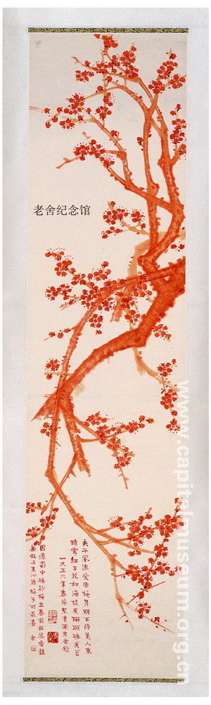 老舍一生极爱欣赏、收藏绘画,并乐于与人共赏,在他居住的“丹柿小院”内,每到亲朋友好到访,时常会开起小小的流动画展来。他收藏的绘画中有很多当代大师如齐白石、李可染、于非闇等的佳作,妻子儿女也都对丹青颇有心得,文艺界诸多友人曾在他们的画上题款留念。