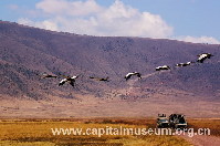 作品名称:翱翔的皇冠鹤 拍摄地点:坦桑尼亚 作者:李宇亮 作者单位:非洲司 点缀着白云的蓝天和印着车辙的山脊作为背景,一队皇冠鹤舞动翅膀优雅地掠过,形成一道优美的弧线,游客纷纷停车欣赏这荡涤心灵的美妙瞬间,生怕惊扰了这里真正主人。 |