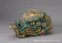 蓝琉璃吻兽 元代 北京市元大都遗址出土 首都博物馆藏 建筑构件。在元大都遗址中,蓝色的琉璃吻兽、琉璃瓦和建筑装饰已经屡有发现,这与明清宫殿建筑以黄、红为主的色调有很大的不同,揭示出建立元朝的蒙古族对于蓝色的喜爱。 |