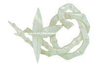 镂空竹枝玉饰 金代 北京市房山区长沟峪煤矿金墓出土 首都博物馆藏 白玉质,玉质细腻光润无暇,抛光极佳。透雕一盘卷在一起的竹枝,于首端雕三片竹叶,竹节虽细却显现出力度,形态逼真,工艺精湛。竹子生长在南方,在北方金代玉作中极为罕见,这是迄今所知最早以竹为题材的金代出土玉饰。金灭辽并占据北宋一些地区时,将大批工匠掳到金代统治区域内,出现以上题材可能与此有一定关系。 |