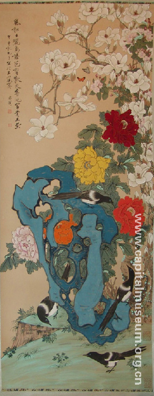于非闇(1888—1959年),北京人,祖籍山东蓬莱,原名于魁照,后改名于照,字非厂(音同安),别署非闇,又号闲人,中国现代工笔花鸟画大师。他擅长工笔花木禽鱼,从宋人画法入手,雕青嵌绿,富丽绚烂。白描兰、竹、水仙,尤为清逸。他的绘画得宋人高古之气韵,将艳丽的色彩和精到的笔法巧加融合,整体画风沉着含蓄,格调高古。