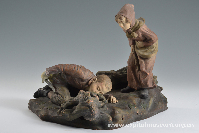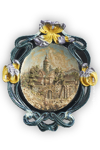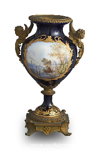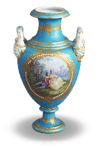 法国蓝地开光彩绘人物风景双耳瓶 |