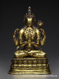 四臂观音 喀尔喀蒙古 札那巴札尔 十七至十八世纪 高42厘米 红铜鎏金 嵌宝石 观音菩萨是藏传佛教的主要神祇,也是佛教众多支派都供奉的神祇,是慈悲的化身。这尊精美的四臂观音像,属于蒙古札那巴札尔学派。 札那巴札尔是梵语Jnana vajra(圆满智慧)的转音,藏文为“yeshe dorje”。札那巴札尔是17世纪晚期至18 世纪早期的一个蒙古喇嘛,他第一次参见五世达赖喇嘛的时候,也拜访了一些尼泊尔艺术家,并说服大批尼泊尔艺术家随他同返蒙古。这些艺术家接受札那巴札尔的艺术美学观点,创作出“札那巴札尔风格”的艺术流派——主要体现在造像艺术作品上。这种风格被蒙古艺术家不断模仿,直到20世纪。 这一时期该流派的塑像在技术上臻于成熟,几近完美,比例精准而不僵化。珠宝首饰繁复多样,毫不乏味。莲台底部有独特的三圈环形,其上才是双层仰覆莲座,使塑像显得格外高大。蒙古造像不是整体浇铸,而是分体浇铸,再以铜钉组装。然后再以打磨、抛光处理焊缝,把铜钉隐藏,最后再厚厚地鎏金。 蒙古博物馆有很多精美的札那巴札尔风格造像,世界各地的收藏品中也存有不少,但此尊造像无疑是这一艺术流派至为精美的艺术杰作,尤以四臂观音作为主体而言,无论从造像技术还是精美形式而言,这尊雕像堪称所有艺术流派作品中之完美杰作。恰到好处的身体比例,以及雕像的整体艺术审美使得这尊雕像无愧为艺术瑰宝。 |