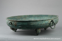 鄬(wéi)中姬铜盘 春秋(公元前770-公元前476年) 河南省淅川县下寺3号墓出土 淅川县博物馆藏 盘是一种水器,常与盉或匜配套使用。商周时期,贵族们在祭祀宴飨前都要行沃盥之礼,即一人执匜倒水供客人洗手,一人捧盘接水。此盘铸有铭文“唯王正月初吉丁亥,蔡侯作媵鄬中姬丹盥盘,用祈眉寿,万年无疆,子子孙孙永保用之”,表明该器是蔡侯为其女鄬中姬丹所做的媵(yìng)器,即陪嫁的礼器。 |