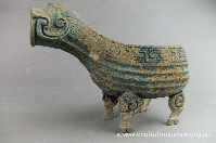 录子朕铜甗(yǎn) 西周(公元前11世纪中叶-公元前771年) 内乡县衙博物馆藏 录国是西周时期的一个诸侯国。西周早期周成王时录国叛乱,被打败后归顺封为子爵,周康王时讨伐淮夷有功,升为伯爵,故址在今安徽六安。该甗腹内铸铭文“录子朕作父己宝彝”,意思是录国的诸侯“朕”铸此鼎祭祀其父“己”。“宝彝”是对青铜礼器的泛称,意即尊贵的铜器。 |
