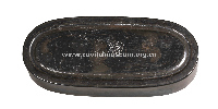 “蕃禺”漆盒盖 秦(公元前221年—公元前206年) 最长28.1厘米、最宽12.4厘米 1953年广州市西村石头岗秦墓出土 广州博物馆藏 木胎黑漆,盖面朱绘云纹,有“蕃禺”二字烙印。“蕃禺”即番禺,是秦汉时期南海郡的郡治所在,这是“蕃禺”地名见于考古实物最早的一例,是当时番禺工官所造。 |