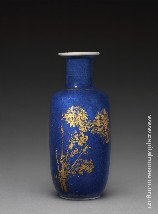 洒蓝釉描金小棒槌瓶