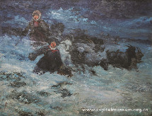官布在上世纪60年代创作的《草原小姐妹》,是根据当时轰动全国的事件——龙梅、玉荣在暴风雪中抢救保护公社羊群的故事而创作的油画作品。由于画家及时、真实而生动地表现了这一事件,这幅画也成为当时画坛的亮点,被印在教科书中,成为家喻户晓的一幅现实主义作品。歌颂英雄行为和奉献精神,无论在当时还是当下,都是社会主义文艺的主旋律精神。