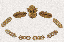 人物形高7厘米,宽5.7 厘米,花冠形高9厘米, 宽4.2厘米 内蒙古赤峰市敖汉旗敖音勿苏朝阳沟出土 敖汉旗博物馆藏 |