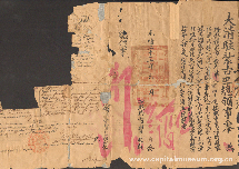 1940年郑潮炯的卖子契约书 展品年代:1940年 展品尺寸: 32*25 新加坡华侨郑潮炯民国初年随父移民英属东马来亚,抗战爆发后,他在南洋义卖瓜子,最后卖掉亲生儿子,换来80元,一并捐给祖国抗战,“有国才有家”是郑潮炯夫妇对这一义举的解释。 |