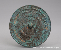 八卦十二生肖纹铜镜 唐(618年—907年) 直径17厘米 北京市西城区西便门外郝井台宋太监墓出土 此铜镜中心为象征五行中“土”的半圆钮,以金炉、树木、池水和火焰的纹饰围绕,分别象征“金、木、水、火”。外围八卦纹饰和十二生肖动物图案,最外侧环绕对应的是十二地支铭文。 |