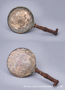 铁柄铜镜 早期金属时代 长18,径9.5厘米 西藏自治区拉萨市曲贡遗址出土 西藏博物馆藏 |