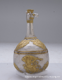 兽首胡人纹银壶(复制品) 唐(吐蕃时期,约7世纪) 高90,瓶身周长54,瓶底周长34厘米 大昭寺藏 |