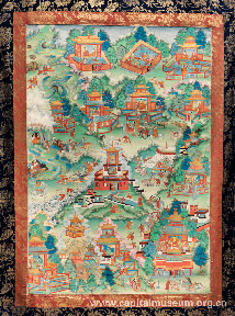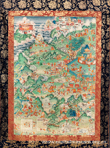 布画禄东赞请婚图唐卡 清 长177,宽97厘米 西藏博物馆藏 |