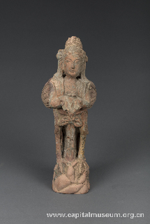 绿釉迦陵频伽 两翅最宽17厘米、进深22厘米、高46厘米 首都博物馆藏 迦陵频伽,意译作好声鸟、美音鸟、妙音鸟。其形象为上半身为人,下半身为鸟,身体类似仙鹤,两腿修长,双翅,头部或为童子,或为菩萨形象。手中常持各种乐器,或作演奏状,有反弹琵琶、吹奏筚篥(bì lì)、笛子等乐器,或手捧花束。迦陵频伽在佛教经典中,一般在两种场合出现:一是弥勒佛或释迦摩尼佛对诸菩萨或众生说法之时,迦陵频伽与诸神鸟出妙音,闻者侧耳倾心;另一场合,迦陵频伽则出现在西方极乐净土,其具有“佛音”的象征意义。 |