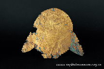 “海冬青”鎏金铜饰片 高24.3、宽30.5、厚0.03厘米 耶律羽之墓出土 内蒙古文物考古研究所藏 鎏金铜海冬青饰片为海冬青正面捕猎形象,双翼张开,利爪扑地,线条流畅。饰片周边亦有钉孔,为小帐装饰。 海东青属于鹰隼类飞禽。女真族为辽国进贡海东青而不胜其苦,因致于叛。史料记载称:“女真服属大辽二百余年,世袭节度使,兄弟相传,周而复始。至天祚朝,赏刑僭滥,禽色俱荒。女真东北与五国为邻,五国之东邻大海,出名鹰,自海东来者,谓之“海东青”,小而俊健,能擒鹅鹜,爪白者尤以为异,辽人酷爱之,岁岁求之女真,女真至五国,战斗而后得,女真不胜其扰。及天祚嗣位,责贡尤苛。又天使所至,百般需索于部落,稍不奉命,召其长加杖,甚者诛之,诸部怨叛,潜结阿骨打,至是举兵谋叛。” |
