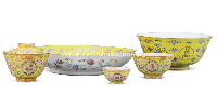 清光绪黄地粉彩描金“万寿无疆”瓷器