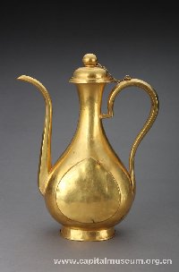 明杏叶纹金执壶 通高29.5cm,口径6.4cm 明(1368-1644) 丰台区右安门外万贵墓出土 首都博物馆藏 |