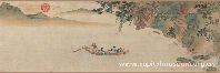 赤壁图卷 仇英 明 绢本 设色 纵26.5厘米 横90.5厘米 辽宁博物馆藏 仇英(约1498-1552),字实父,号十洲。原籍江苏太仓,后移居苏州。 吴门四家之一,与沈周、文徵明、唐寅并称为“明四家”。 《赤壁图》画意取材于苏轼的二赋一词。画家一反其工整谨严、华丽繁密的画风,而是以清雅的色彩、淡淡的笔触,描绘出空濛的景致。画面中心以苏轼与友人泛舟江上、啜茗闲叙为主景,配以远山近壁烘托主题,恰当地表现了 “纵一苇之所如,凌万顷之茫然”的意境。 款识:吴郡仇英实父制 钤印:十洲 |