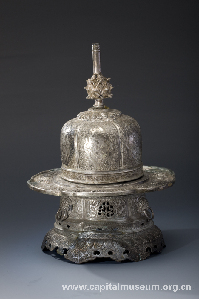 錾花单孔银熏炉 南宋绍兴十四年(1144年) 宁波市天封塔地宫出土 高17.2厘米,底径10.5厘米 宁波博物馆藏 该件熏炉由炉座、炉身和炉盖三部分组成。圆筒形座,底圈刻莲花、如意和缠枝卷草,再由条式的朵花、卷花两组上下相迭。座身一周六格平分,每格内均刻缠枝卷草,居中为一凸出的铺首衔环。近口沿处一周刻极细的飞禽和花草。器身内置半圆形内炉,宽沿伸出器身作六瓣葵花形,分别刻绘飞禽走兽和花卉。圆筒形器盖,顶部一凸莲,莲花上伸出烟孔。 唐宋时期专用于供佛的香炉中,有金属多足炉和座炉两种。在炉盖或盖钮上加以莲花或莲蕾造型并作为出烟口,为座炉装饰中的重点。这是自隋代以来流行的莲花炉中的一种。 |