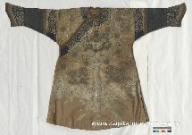 黄江绸绣五彩五蝠平金佛字女龙袍 衣长132厘米,通袖长193厘米 慈禧陵地宫出土 清东陵文物管理处藏